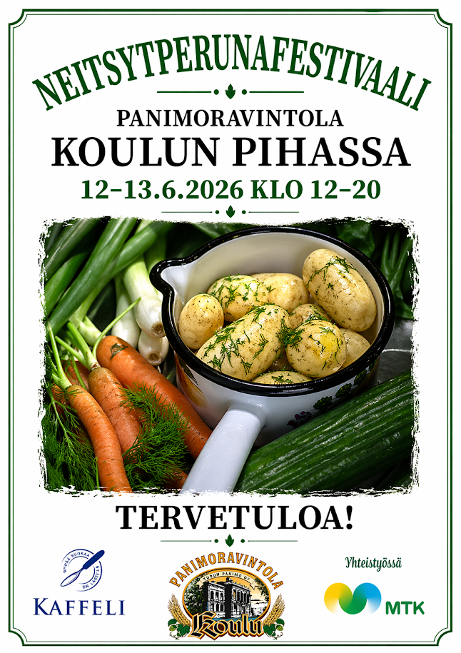 Vuosi 2026 NEITSYTPERUNAT OVAT TÄÄLLÄ TAAS! 12. ja 13. kesäkuuta Panimoravintola Koulun piha täyttyy perunoista, noista ihanista uusista. Jo joutui armas aika ja pottu suloinen. Kauniisti joka paikkaa koristaa neitsyt, jungfru ja extra virgin. Hän on neitosista kaikkein kaunehin. Neitsytperunafestivaali tuo varhaisen perunan ihanaa sanomaa kahtena päivänä, perjantaina 12.6. ja lauantaina 13.6. Paikka on jo…
